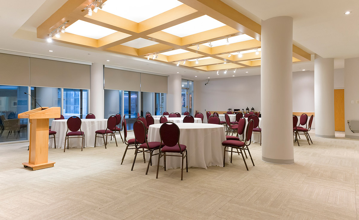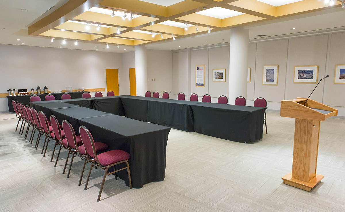 The Douglas Cardinal Salon is located near the Grand Hall. It is ideal for meetings and workshops. Adjacent to the Douglas Cardinal Salon is the VIP Lounge which is often used for catering services, as a breakout room, or for small meetings.