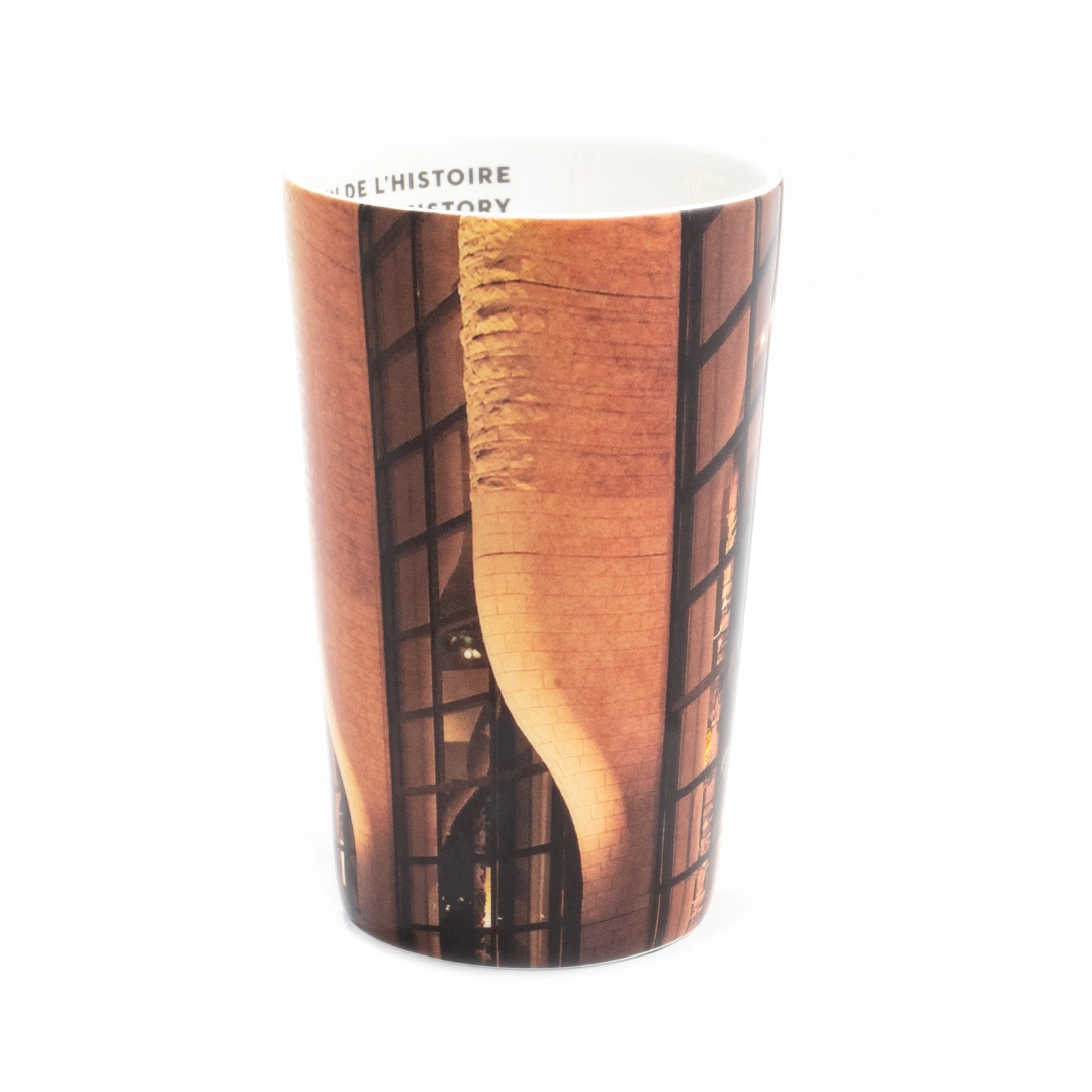 Enjoy your tea or coffee in this elegant fine bone china mug, featuring a printed design of the Canadian Museum of History’s iconic architecture and the Grand Hall glowing at dusk.