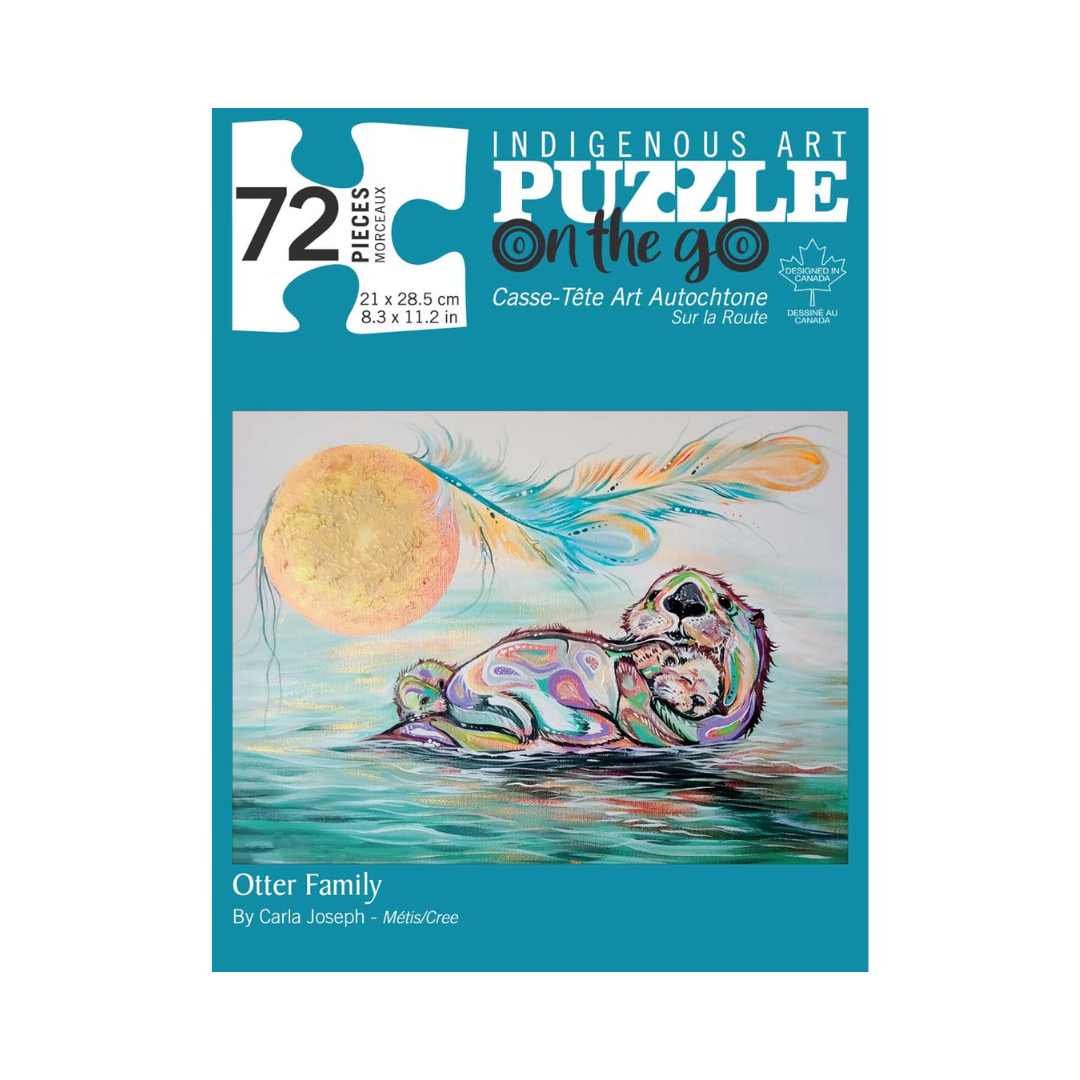 This beautifully illustrated 72 pieces puzzle by Canadian Métis/Cree artist Carla Joseph is a good way to initiate yourself or someone you like to the puzzle world and the Canadian First Nation artworks. Not only will it challenge your mind, its vibrant colours and unique artwork are sure to appeal your visual senses. Appreciate this individual piece of art while engaging your intellect. What a great way to spend a weekend in front of the fire or as a gift for someone special!