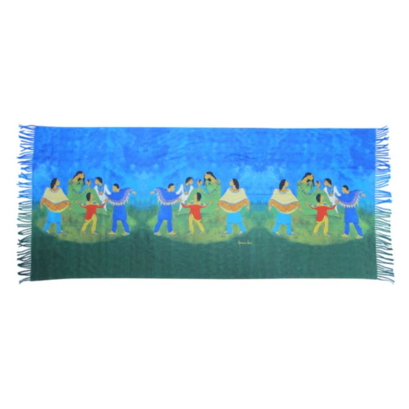 Crafted from acrylic, this versatile accessory has been adorned with the captivating artwork “Family Circle” by Sioux Native artist Maxine Noel.