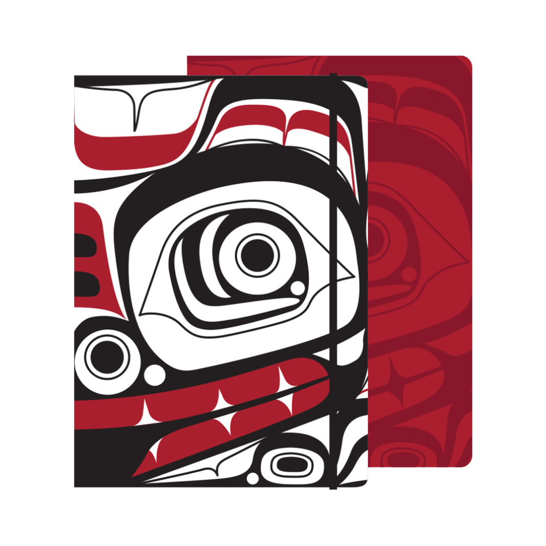 Capture your thoughts, dreams, and plans in this beautifully crafted indigenous art journal. This hardcover journal is designed with rounded corners to minimize wear and tear and features an elastic band closure for added security. Inside, you’ll find 192 pages, with blank pages on the left for sketching and lined pages on the right for writing personal reflections, favorite quotes, or poems. The artwork featured on the journal is Matriarch Bear by Tsimshian, Ts’msyen artist Morgan Asoyuf.