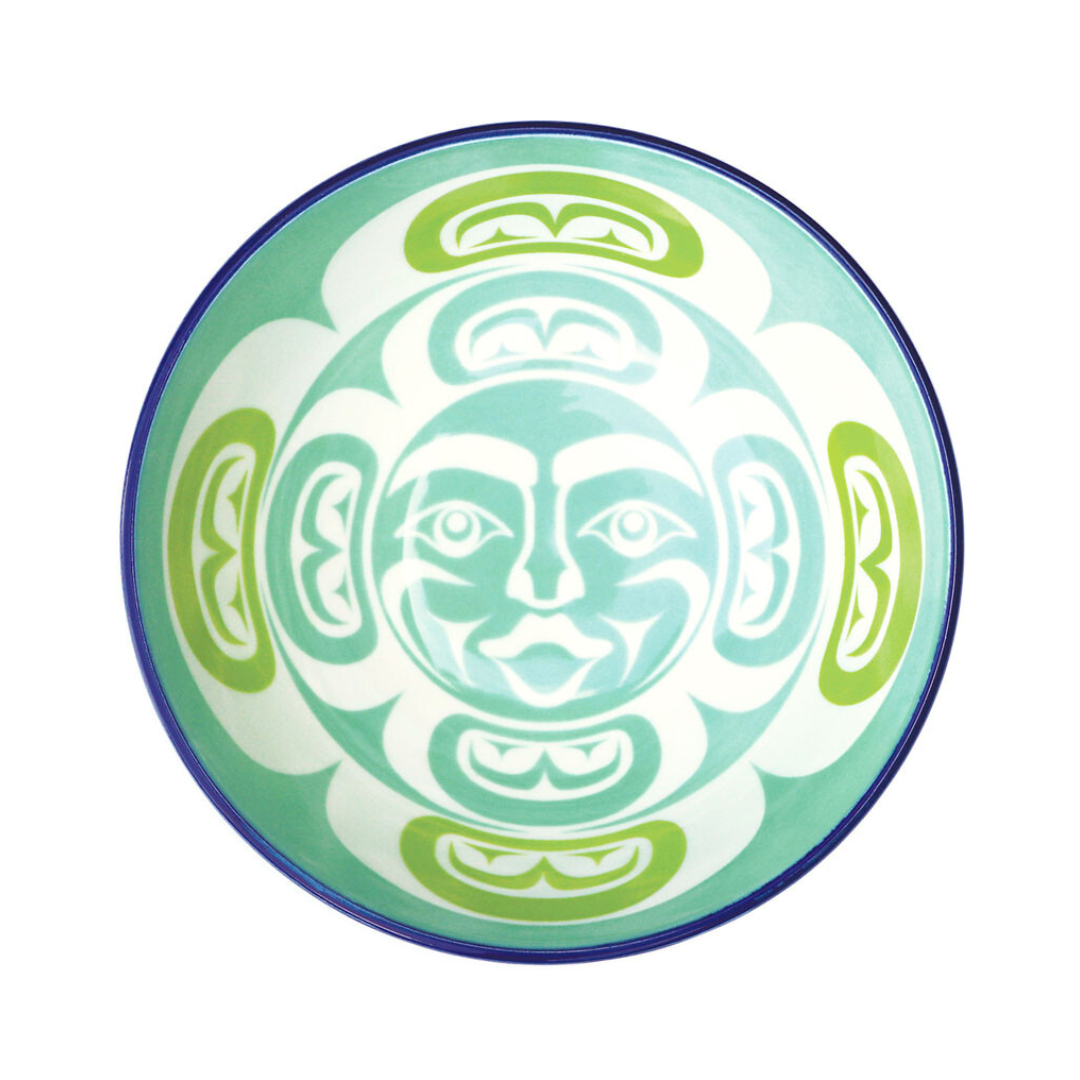 The artwork Moon was created by Simone Diamond. She was born in Duncan, British Columbia, and now resides in the Stó:lō Territory. Her designs are in the West Coast Salish style and incorporate such mediums as pencil, painting and carving. She carved her first mask at the age of 13 and was selling her designs by 16. Simone is self-taught and has a strong family history of influential West Coast Salish artists. Continuing to develop her unique and very detailed style, she is working towards establishing her career through consistent work.
