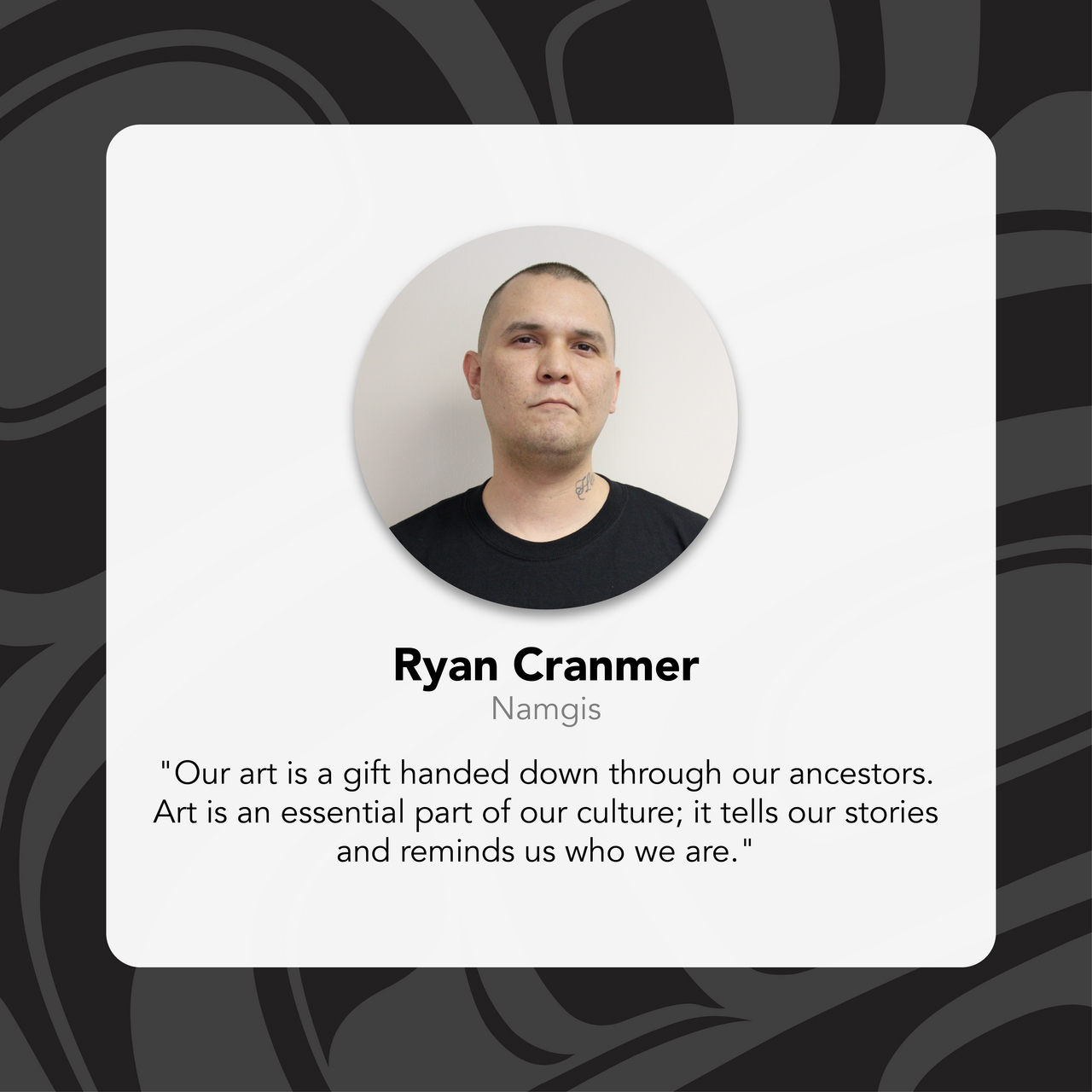 The artwork Transforming Eagle was design by Namgis artist, Ryan Cranmer.