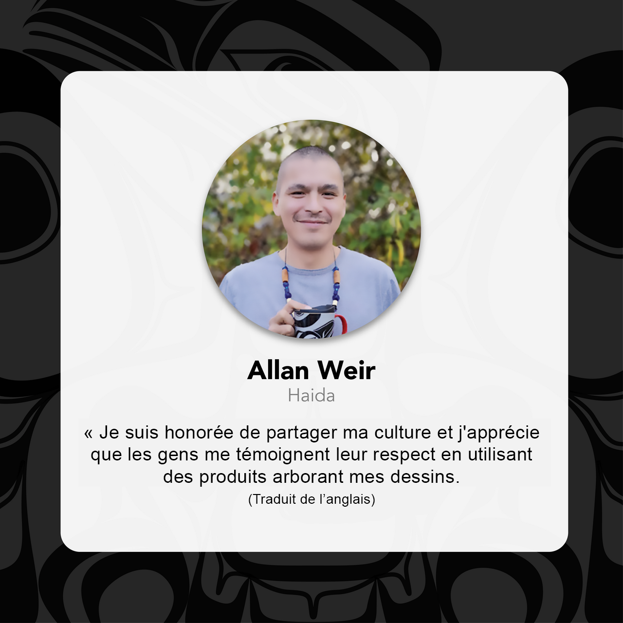 This embossed leather wallet has been crafted from genuine leather and a polyester lining. The embossed pattern showcases the Indigenous artwork ‘Raven Box’ by Haida artist Allan Weir. The wallet offers style and security with the built-in RFID protection.