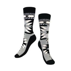 Elevate your style with these socks by renowned Native Artist Leah Dorion. Crafted from high-quality polyester, these socks are available in Small-Medium and Medium-Large sizes, ensuring a great fit for everyone.