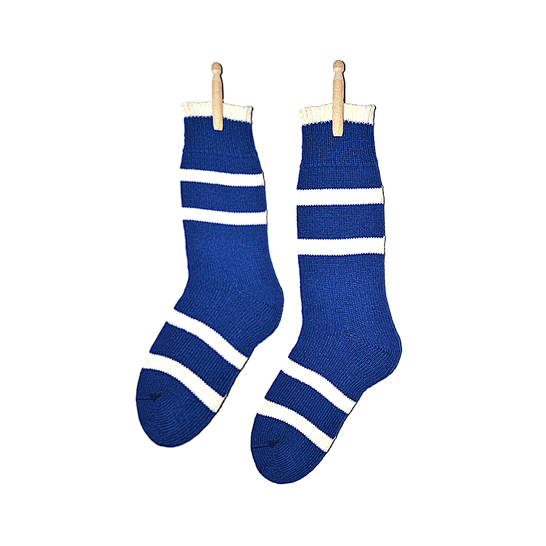 These lambswool socks are knitted in Quebec by local artisans using Quebec lambswool. They are warm, durable and becomes softer after washing. Their ideal thickness makes them easy to wear inside skates while keeping your feet warm.