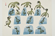 This new and unprecedented creative venture — a community-owned print studio in the Arctic — was a source of income and pride for the residents of Cape Dorset, offering an artistic and culturally affirming way of recording old stories, history, myths and legends. The success of Cape Dorset inspired many other Inuit communities across the Arctic to create their own print studio.