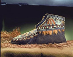Ces mocassins hurons, décorés avec des poils de caribou, ont été fabriqués à partir