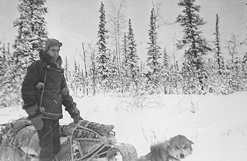 Richard Slobodin with a loaded sled, Fort McPherson, Northwest Territories, 1946. Slobodin gave this photograph to the Gwich’in Social and Cultural Institute in 2001.