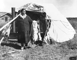 In 1950, Sarah moved to Old Crow. She became actively involved in the community and the Church. She was the first female council member of the Vuntut Gwitchin First Nation and president of the Old Crow Women’s Auxiliary. As a well-respected spokeswoman, she endeavoured to set an example for the younger generations. Her last recorded speech was on the occasion of her 100th birthday, on April 10, 1996.