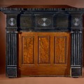 This mantel was removed from the parlour of the house built for The Reverend William Jenkins, in 1827, on Kennedy Road just north of Unionville, Ontario. The design was inspired by the architectural features of mantels in the finer houses of England and Scotland during the late 1700s. Carved paterae, such as the oval and circular examples shown here, were first popularized by British designers Hepplewhite and the Adam brothers. This mantel may have provided some familiar comfort to Reverend Jenkins, who was born and educated in Scotland, as he settled into his new home.