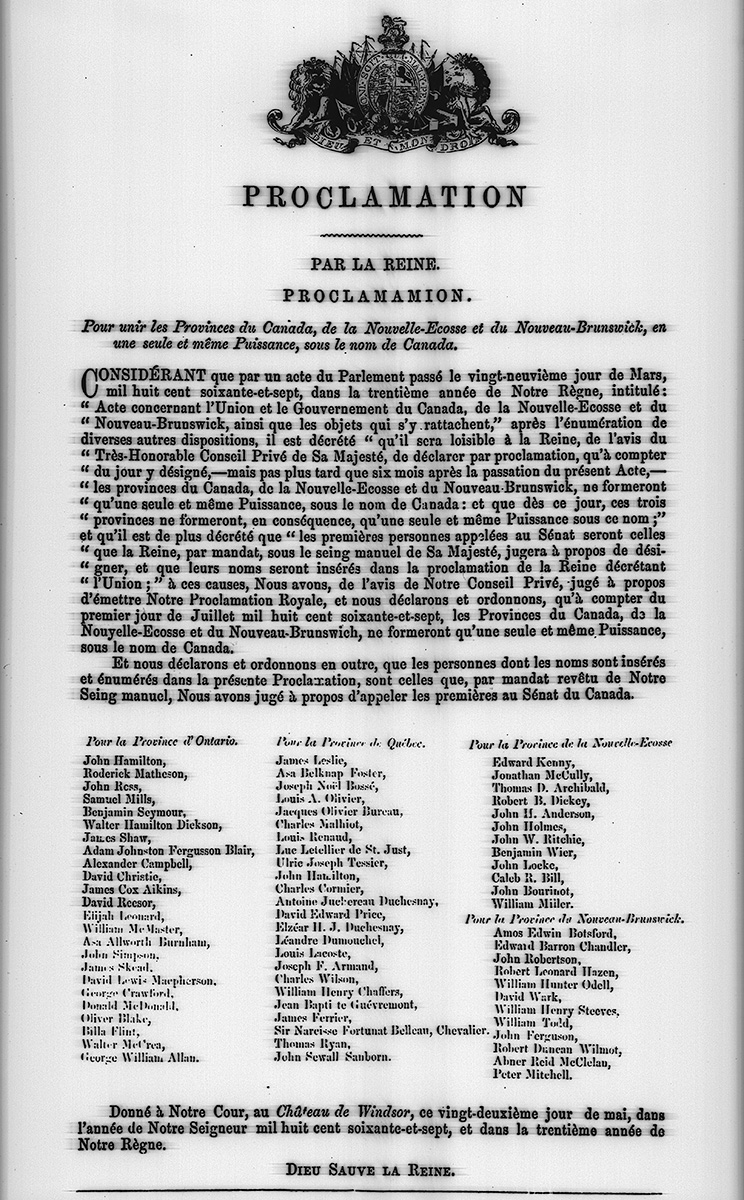 The British North America Act came into effect on July 1, 1867, marking the birth of the Dominion of Canada. The Dominion comprised four provinces: Nova Scotia, New Brunswick, Quebec and Ontario.