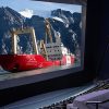 A woman standing in a hallway with blue lockers in the Canadian Museum of History.