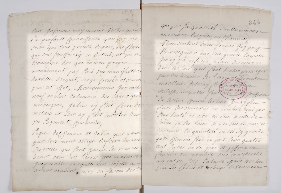 This letter was written by de Saint-Père to the Minister of Marine and Colonies of France in 1705. In it she describes her textile business and the different materials that she and her employees use. She also describes making blankets using materials found locally. Although she does not mention them, it’s likely that she was inspired by local Indigenous peoples.