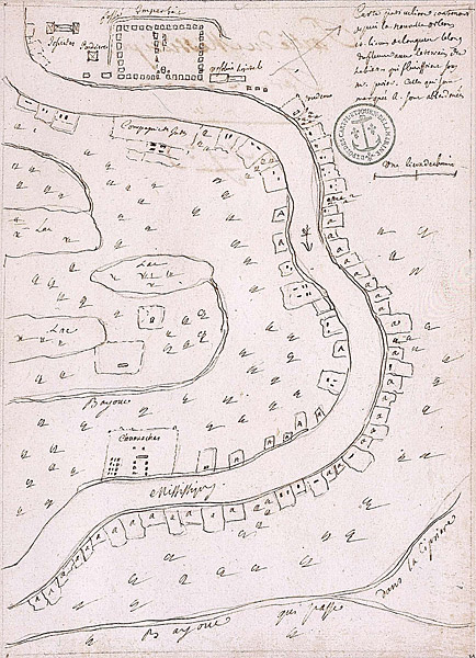 ![Map from New Orleans 10 leagues long along the River, with the inhabitant’s landgrant under Mr. Perier |Carte particulière contenant depuis la Nouvelle Orléans 10 lieues de longueur le long du fleuve, avec le terrain des habitans qui fleurissoient sous M. Périer. Anonymous. [ca 1750]. Manuscript map of landgrants established between the bayous and the Fort, whose buildings are detailed Dim. 18.2 cm x 25 cm © Service historique de la défense, archives centrales du département marine à Vincennes, MV SH 71 Recueils R68 numéro 61. www.servicehistorique.sga.defense.gouv.fr Map from New Orleans 10 leagues long along the River, with the inhabitant’s landgrant under Mr. Perier](https://www.historymuseum.ca/virtual-museum-of-new-france/files/2011/12/New-France_2_4_3_Map-since-the-New-Orleans-10-leagues-long-150x200.jpg)