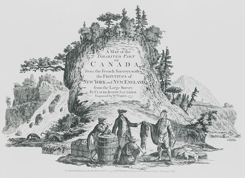 Merchant trading with an Indian, detail from frontispiece: A map of the Inhabited Part of Canada…, William Fadden, 1777
