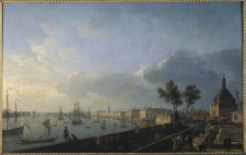 Vernet’s painting shows the bustle of loading and unloading activity along the banks of the Garonne River at Bordeaux in 1758. Large buildings flank the harbour area. They date from the early 18th century and demonstrate the degree to which this provincial city and hinterland was becoming rich from commerce, especially from the trade in sugar. The raw sugar was imported from the Antilles, refined in Bordeaux, and shipped out again to various European markets. For every urban trade, there was a rural complement of village craftspeople living off the manufacture and carriage of products and produce to and from Bordeaux. For example, potters in places like Sadirac, less than ten kilometres from the Garonne, made cone moulds used in the sugar refining process.