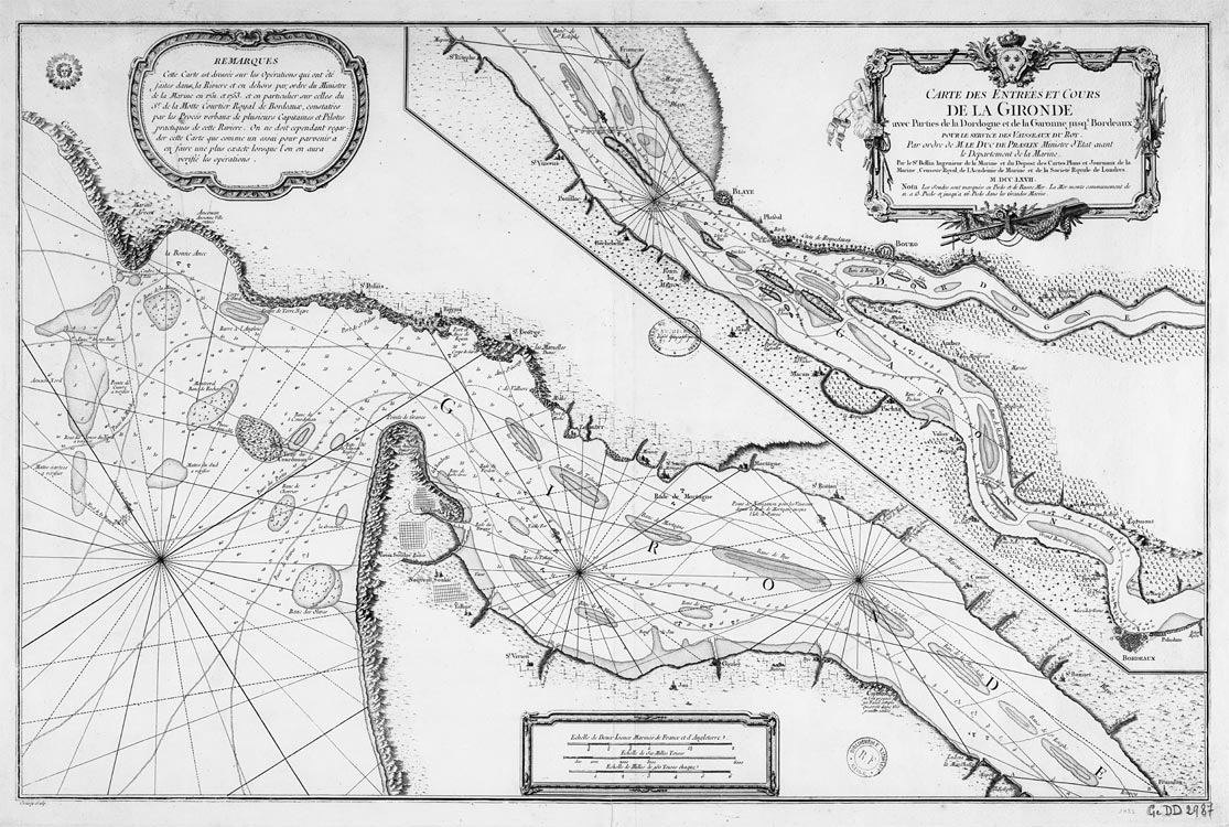 Map of the Gironde Mouth and Course with parts of the Dordogne and the Garonne up to Bordeaux…, 1767, by J.-N. Bellin